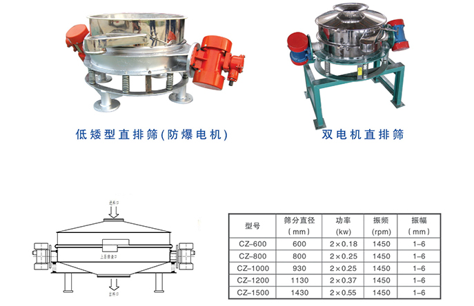 CZ系列直排篩是一種多用途新型篩分機(jī),物料直接排放,處理量大。振動源分單電機(jī)和雙電機(jī)結(jié)構(gòu)形式。雙電機(jī)結(jié)構(gòu)相對于單電機(jī)結(jié)構(gòu)直排篩的物料的運(yùn)行軌跡更平穩(wěn),上層物料可自動排放,設(shè)備適應(yīng)性顯著增加;
